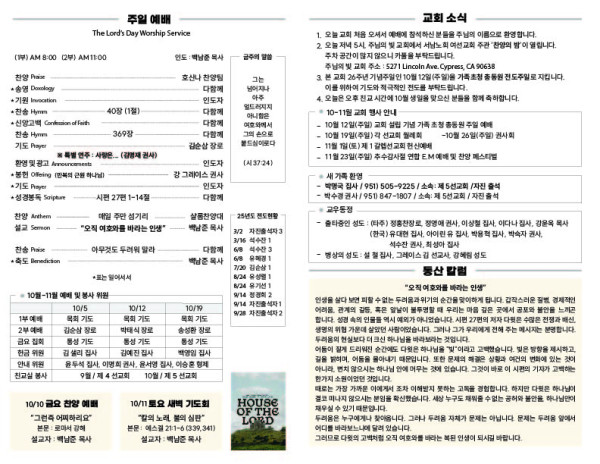 10/05/25 교회 주보 페이지 정보 작성자 아름다운동산교회 댓글 0건 조회 6회 작성일 25-10-04 07:15 목록 본문 10/05/25 다음글09/28/25 교회 주보 25.09.27 댓글 0 댓글목록 등록된 댓글이 없습니다. 목록